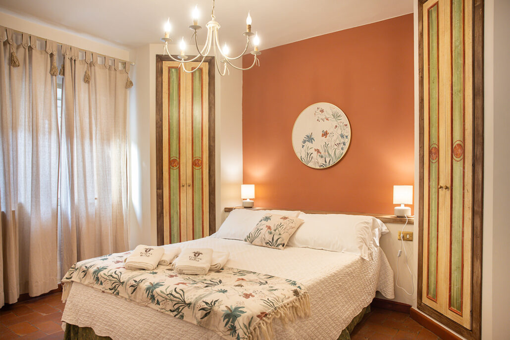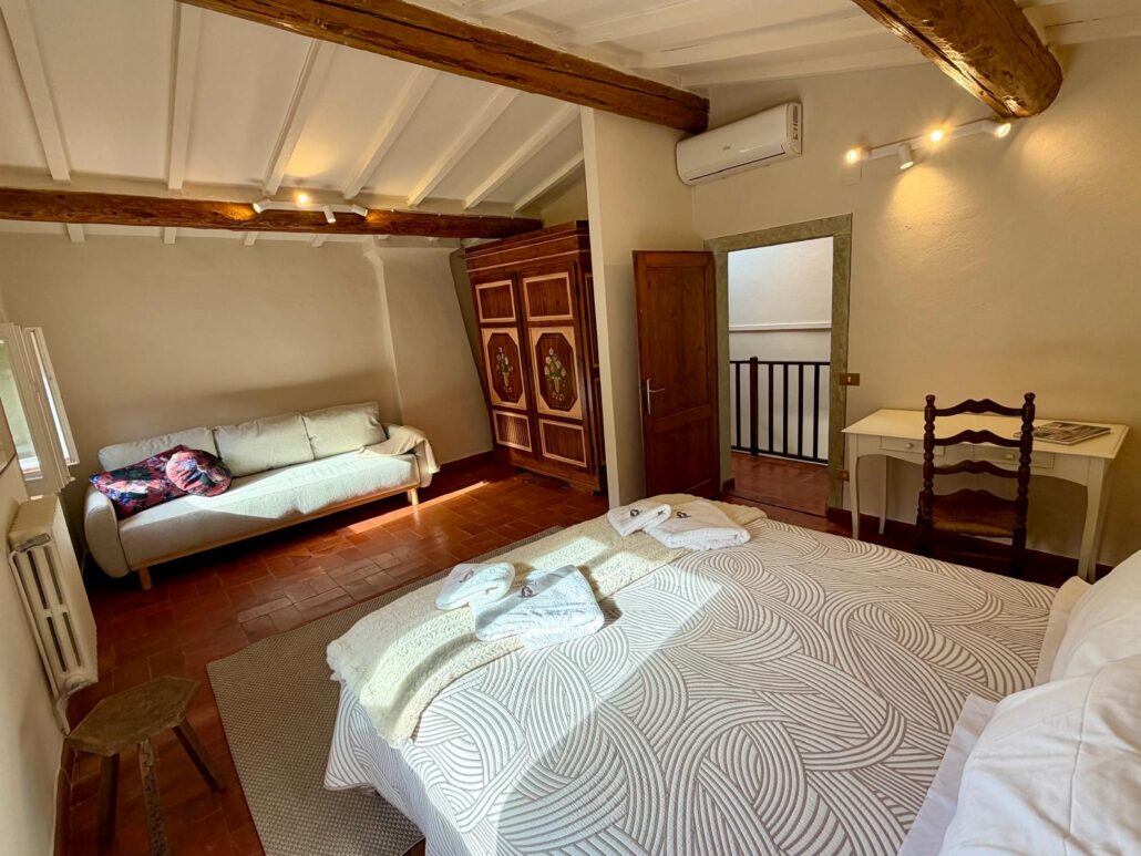 Always on the first floor, next to the large fireplace, there are the first 2 double bedrooms. Bright, spacious and very tasteful. The bathroom with a shower is located in between the two bedrooms.